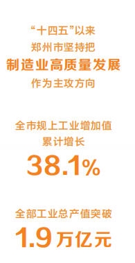把时间轴拉长,一幅更为恢宏的产业图景铺展开来。“十四五”以来,郑州市坚持把制造业高质量发展作为主攻方向,发展壮大“7+20”重点产业链群,加快打造国家先进制造业高地,全市规上工业增加值累计增长38.1%,全部工业总产值突破1.9万亿元,越来越多“郑州制造”进入中高端、成为关键环。