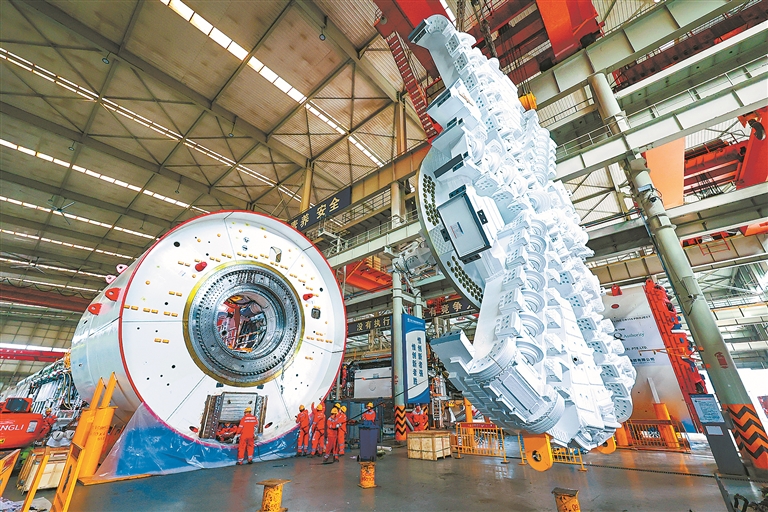 中铁装备盾构总装车间。 记者 聂冬晗 摄