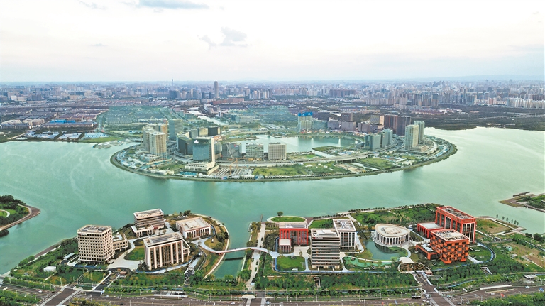 中原科技城北龙湖湖畔,超聚变研发中心及总部基地。 记者 王延辉 摄