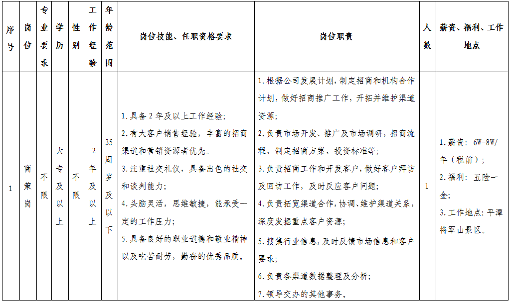 为满足公司发展对于补充人才的需求,确保公司各项工作顺利推进,并结合招聘需求,决定面向社会公开招聘2个岗位,共2名劳务派遣人员,其中1名商策岗和1名行政总务岗,具体事项如下: